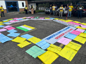 Com cartazes, gritos de resistência e esperança no coração, moradores do bairro São Domingos foram às ruas nesta terça-feira (09) para protestar contra um processo de reintegração de posse que ameaça cerca de 100 famílias.