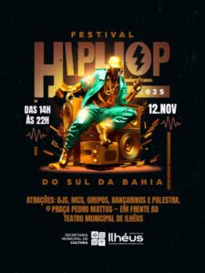 Com o apoio, a Prefeitura de Ilhéus reafirma seu compromisso com a valorização das expressões culturais urbanas e o reconhecimento do Hip Hop como patrimônio imaterial que compõe e fortalece a diversidade cultural do município.